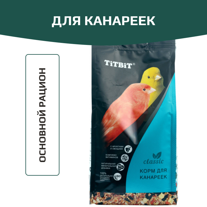 TiTBiT корм для канареек Classic - это полнорационная, сбалансированная зерновая смесь для ежедневного употребления. Состоит из девяти злаков с добавлением фруктов, овощей, натурального минерального и витаминного комплекса. Оптимально подобранный состав обеспечит птицу необходимыми питательными веществами и разнообразит ежедневный рацион.