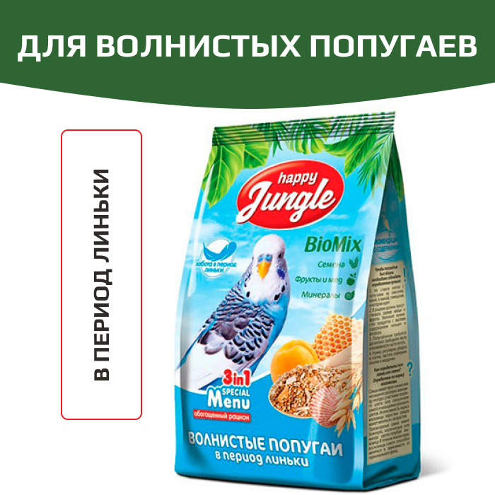 Рационы Happy Jungle сочетают в себе полезные и вкусные ингредиенты, необходимые для активной жизни питомца.