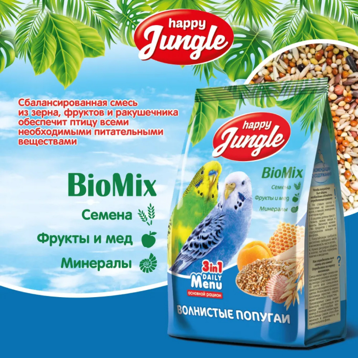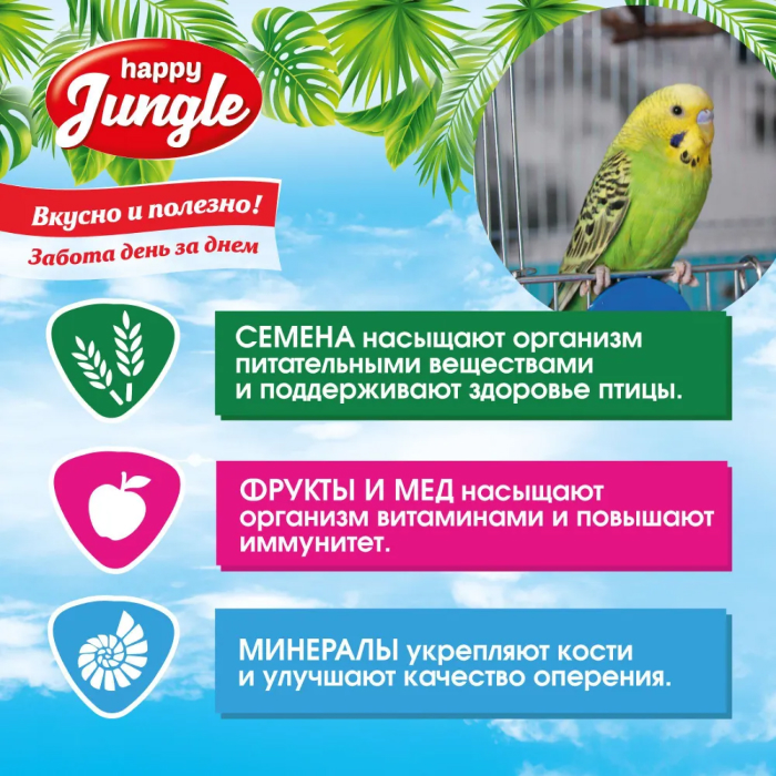 Рационы Happy Jungle сочетают в себе полезные и вкусные ингредиенты, необходимые для активной жизни питомца.