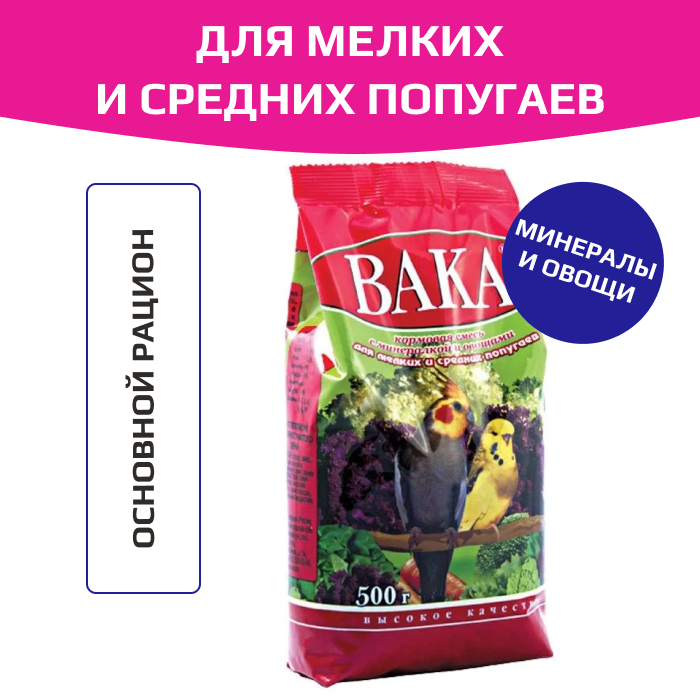 Вака высокое качество корм для мелких попугаев с минералами и овощами.