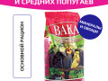 Полноценный сблансированный корм Вака Высокое Качество для мелких и средних попугаев, амадин всех видов и многих других зерноядных птиц. По составу, калорийности и содержанию витаминов наиболее соответствует рациону птиц в естественной среде обитания. Содержащийся в корме йод предотвращает возможные нарушения обмена веществ, заболевание щитовидной железы и развитие зоба. Кроме смеси желательно включать в рацион ваших питомцев творог, тертую морковь, крутое яйцо. Правильно выбранный сбалансированный корм поможет вам вырастить здоровых, веселых и разговорчивых попугайчиков.