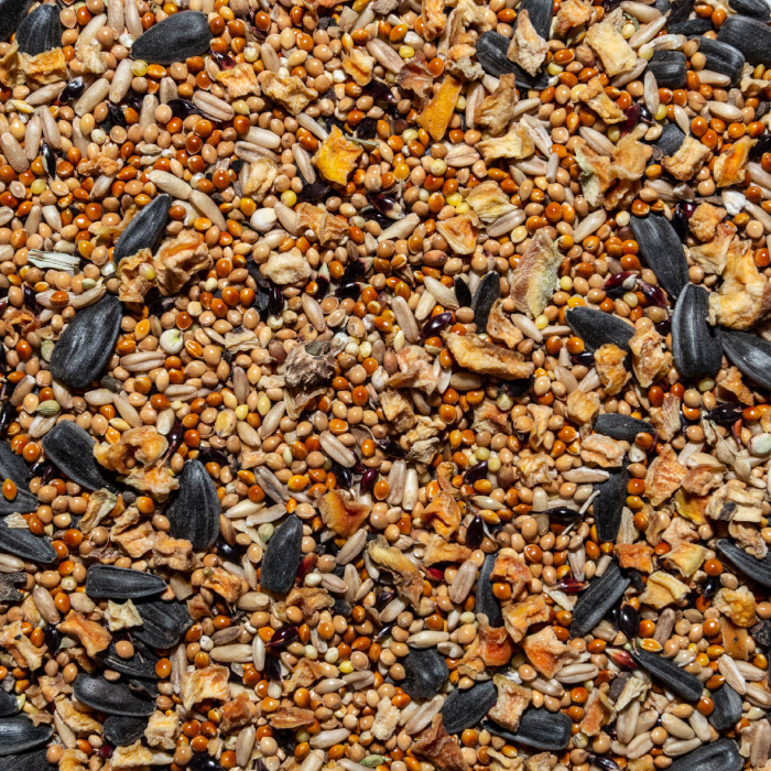 Разработан при участии ведущих специалистов в области разведения декоративных птиц и обладает уникальным составом, включающим в себя не только полноценный повседневный рацион, но и дополнительные компоненты, необходимые вашему любимцу непосредственно в период линьки. (Глюконат кальция в легкоусвояемой форме - для укрепления оперения; пробиотик - для улучшения усвоения корма и нормализации пищеварительного тракта; морские водоросли, как природный источник йода, семена подсолнуха - дополнительный источник энергии, необходимый ослабленному организму).
