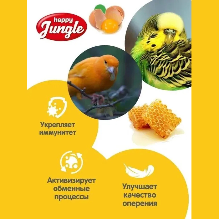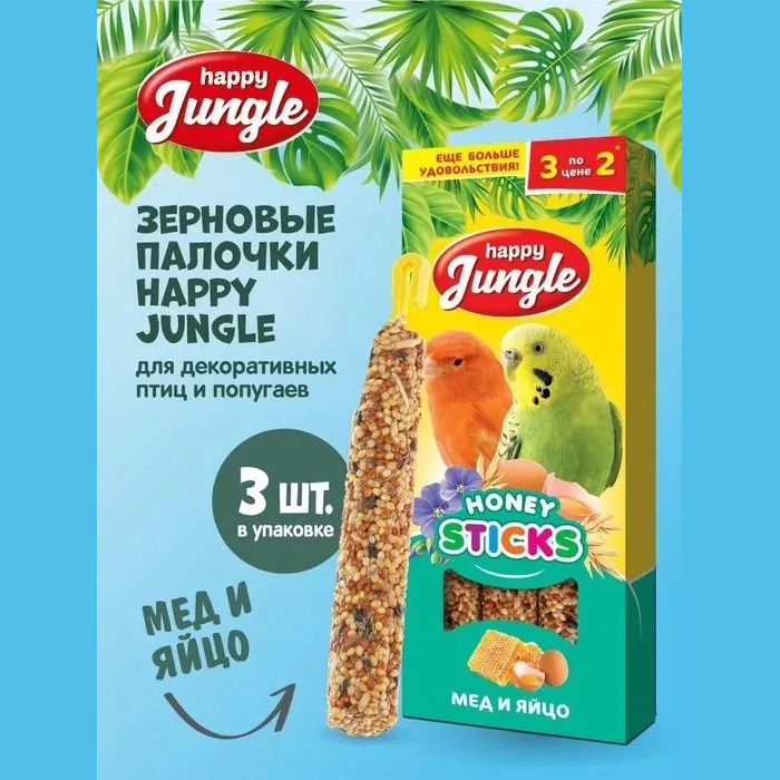 Зерновые палочки Happy Jungle - медовое лакомство для попугаев и декоративных птиц с яйцом.