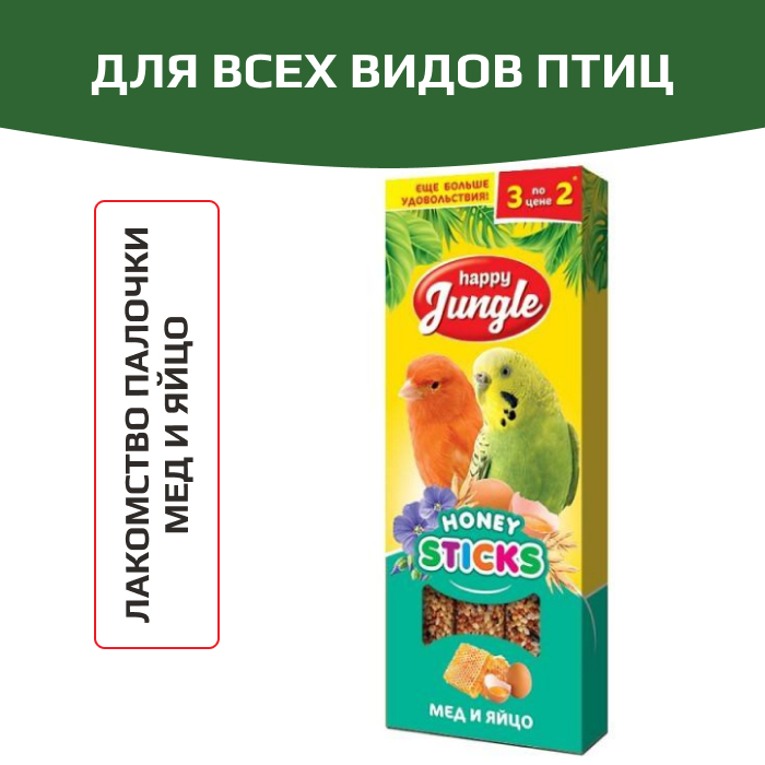HAPPY JUNGLE Палочки для птиц мед+яйцо 3 шт.