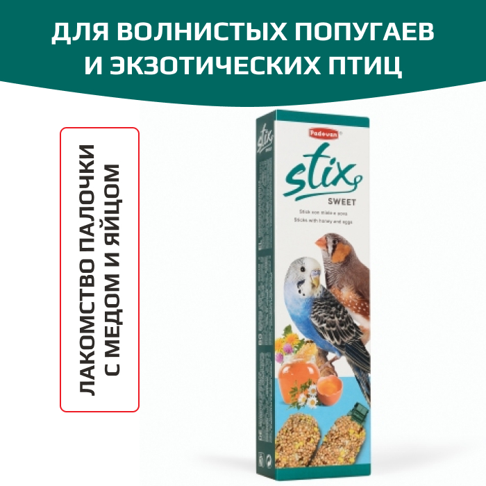 Padovan Stix sweet cocorite ed esotici палочки для попугаев и экзотов с яйцом и медом.