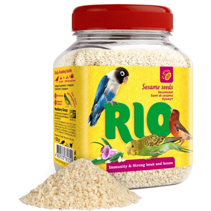 Семена кунжута – лидеры по содержанию кальция, который отвечает за крепкие клюв и кости, а также здоровье опорно-двигательного аппарата птицы. Кунжут – незаменимый элемент ежедневного, сбалансированного рациона птицы. Семена богаты витаминами В1 и Е, минералами и полиненасыщенными жирными кислотами, также содержат антиоксиданты и противовоспалительные вещества, отвечающие за формирование крепкого иммунитета птицы. Семена кунжута станут ценным помощником для поддержания сил организма в период стресса, болезни и линьки.
