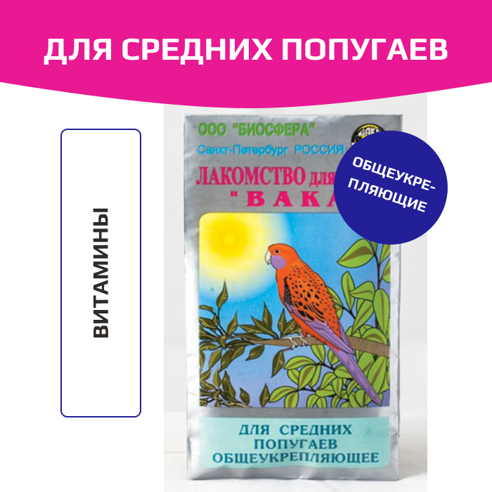 Содержимое пакета тщательно перемешать с 500г стандартной смеси для кормления попугаев. Рекомендуется для ежедневного применения.