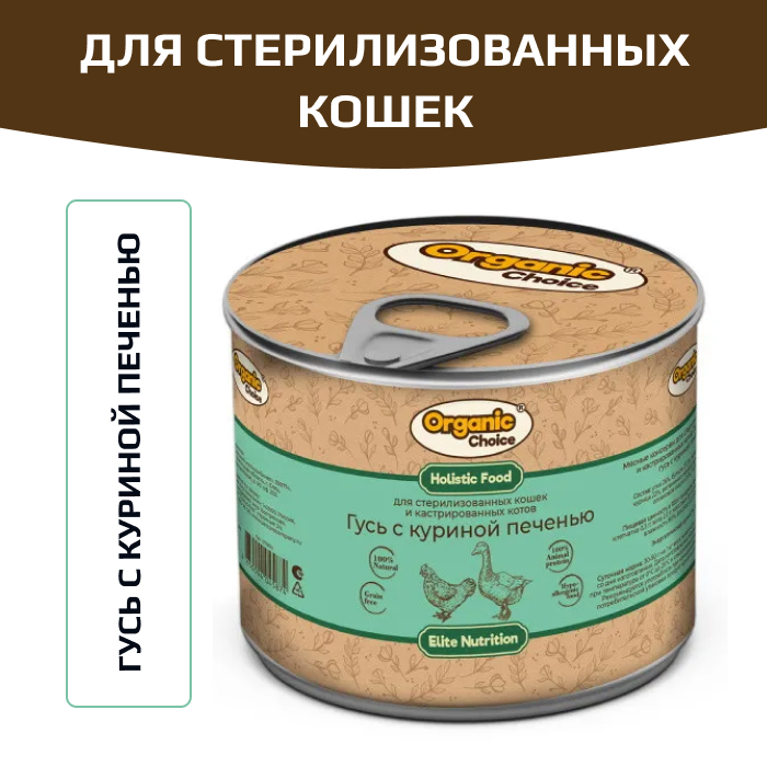 Organic Сhoice влажный корм для взрослых стерилизованных кошек и кастрированных котов гусь с куриной печенью.