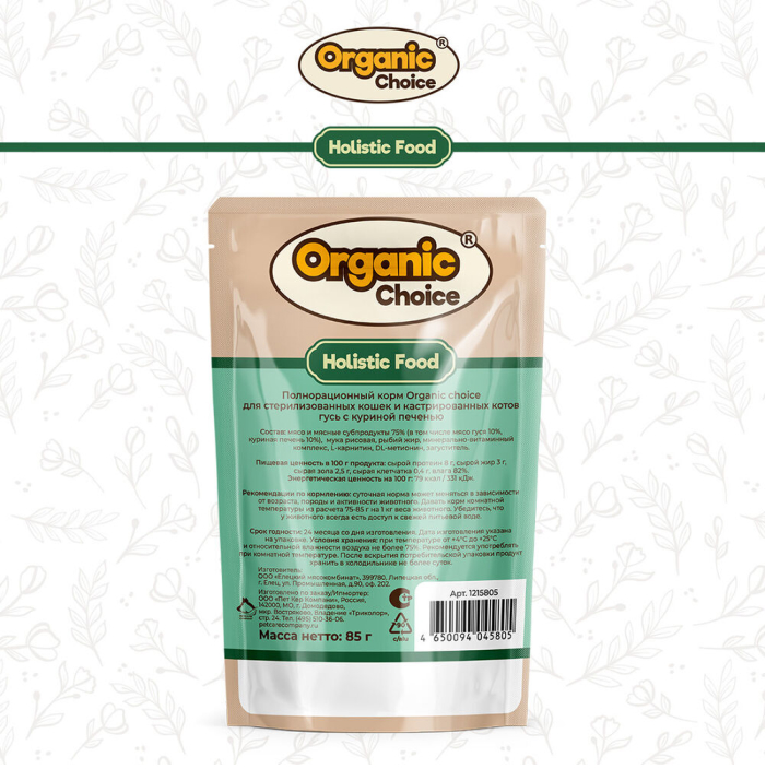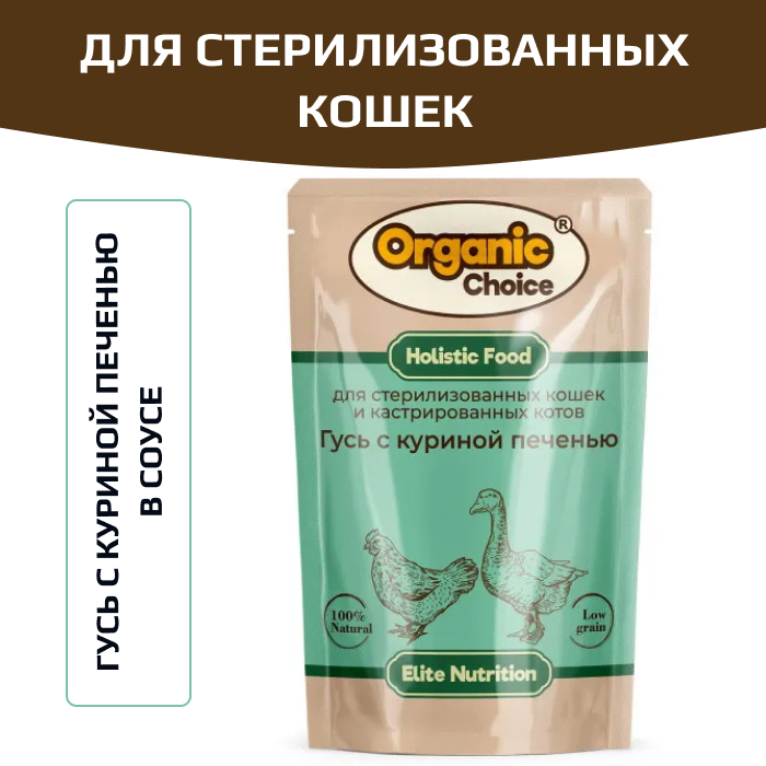 Organic Сhoice влажный корм для стерилизованных кошек с гусем и куриной печенью в соусе.