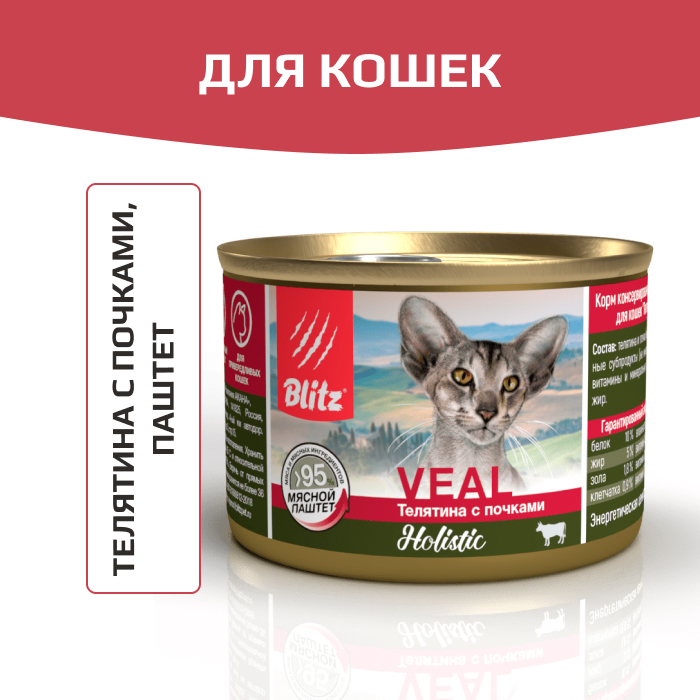 Blitz Holistic Veal and Kidneys Adult Cats All Breeds корм консервированный для кошек телятина с почками.