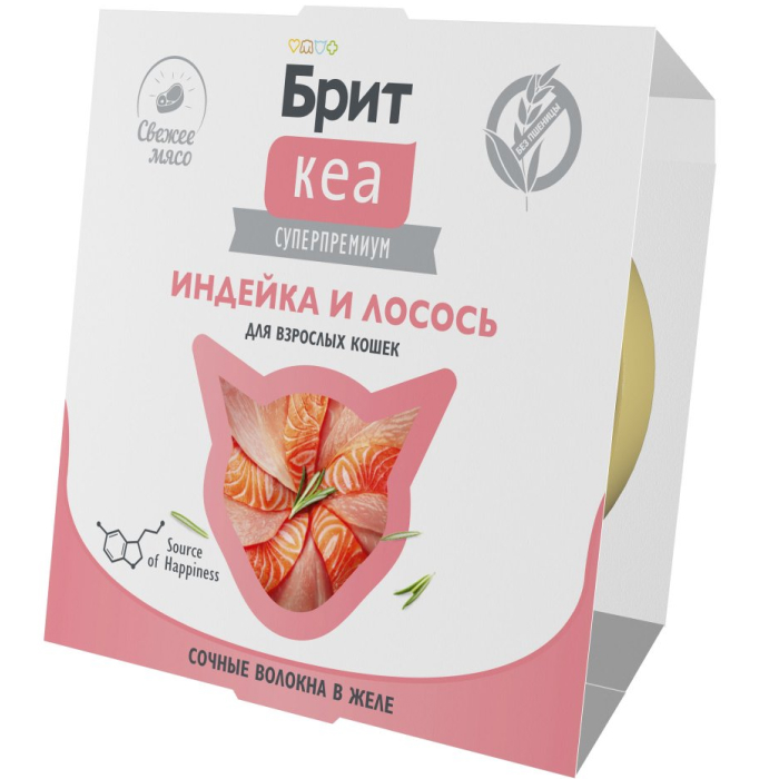 Вся линейка паучей и ламиcтеров Брит Кеа "Волокна в желе" построена на индейке как основном белке, с добавками разных морепродуктов. Это уникальная фишка линейки — моно-белковый состав на базе индейки + сочные волокна и желе, обогащенные спирулиной и таурином, создающие функциональное лакомство для взрослых кошек и котят. Сочетание диетической индейки с жирными кислотами из лосося помогает сохранить здоровье кожи и яркость шерсти. Особенности: поддержка сердечно-сосудистой системы; DHA и EPA из лосося; спирулина — природный источник витаминов группы B и хлорофилла; вкусно и полезно — без сои и злаков.