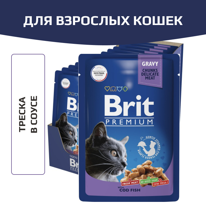 Brit Premium корм консервированный для кошек, треска в соусе.