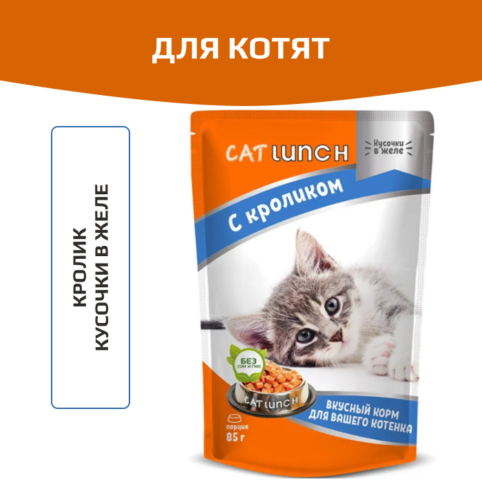 Cat Lunch корм консервированный для котят кусочки в желе с Кроликом.