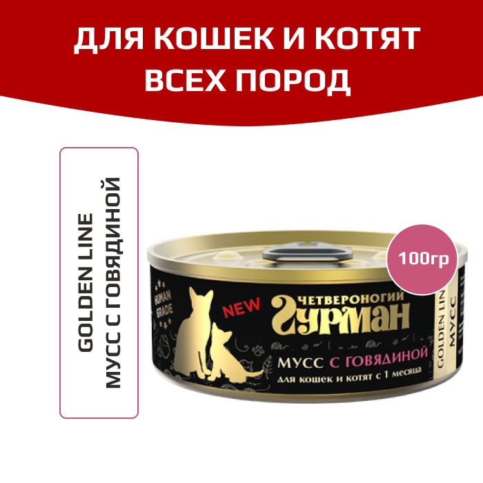 Четвероногий Гурман Golden line Мусс корм консервированный для котят и кошек мусс с говядиной.