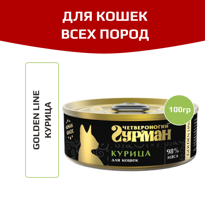Четвероногий Гурман Golden line корм консервированный для кошек курица.