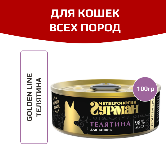 Четвероногий Гурман Golden line корм консервированный для кошек телятина.