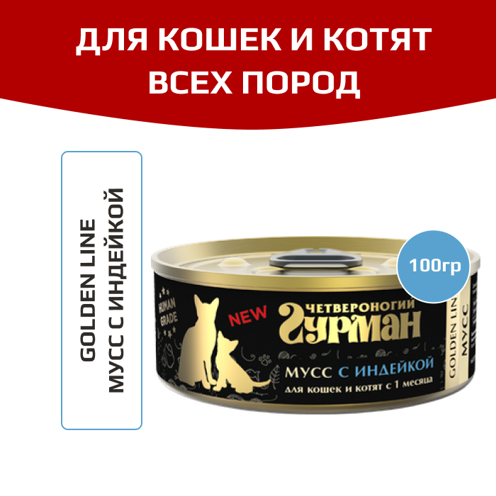 Четвероногий Гурман Golden line Мусс корм консервированный для котят и кошек мусс с индейкой.
