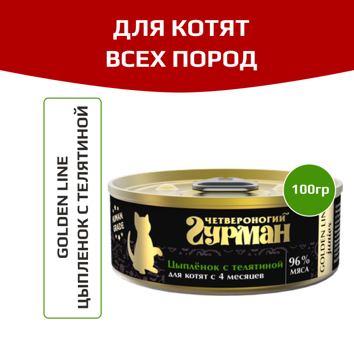 Четвероногий Гурман Golden line корм консервированный для котят цыпленок с телятиной.