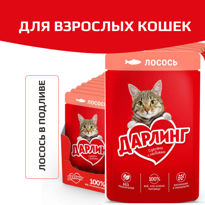 Дарлинг консервы для взрослых кошек лосось в подливе.