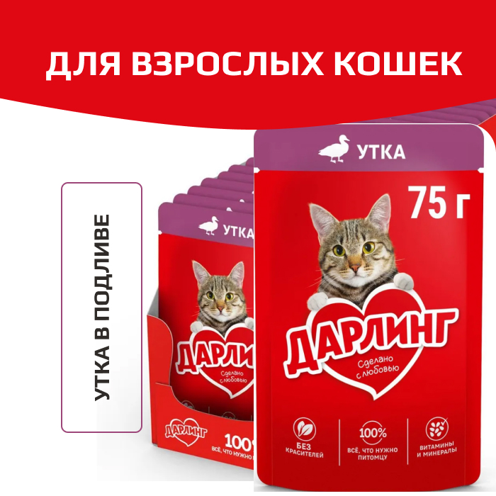 Дарлинг консервы для взрослых кошек утка в подливе.
