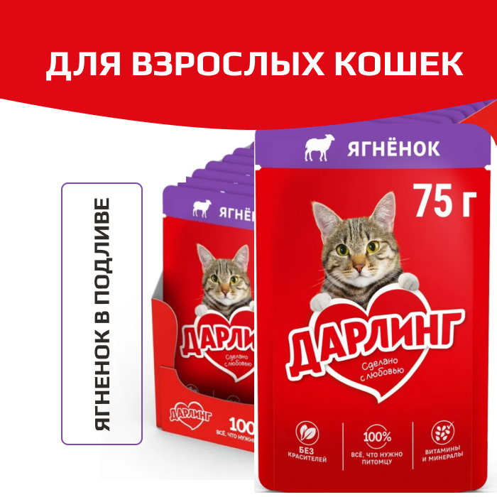 Дарлинг консервы для взрослых кошек ягненок в подливе.