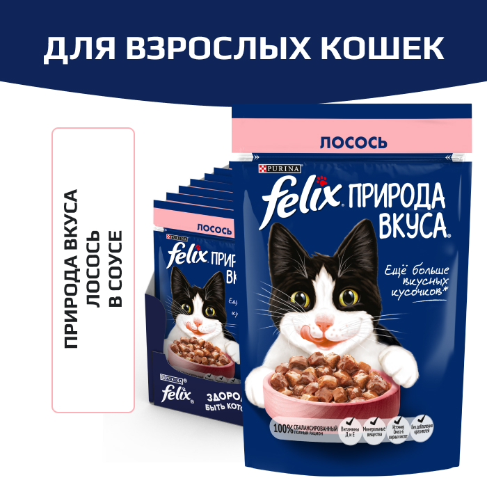 Felix корм консервированный для кошек природа вкуса лосось в соусе.