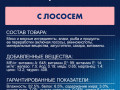 влажность: 82.5%, белок: 6.5%, содержание жира: 3.0%, сырая зола: 2.0%, сырая клетчатка: 0.05%, омега-6 жирные кислоты: 0.3%, энергетическая ценность: 74 ккал/100 г. МЕ/кг: витамин А: 648; витамин Д3: 99; витамин E: 14; мг/кг: железо: 7.5; йод: 0.19; медь: 0.65; марганец: 1.4; цинк: 13.2; таурин: 408.