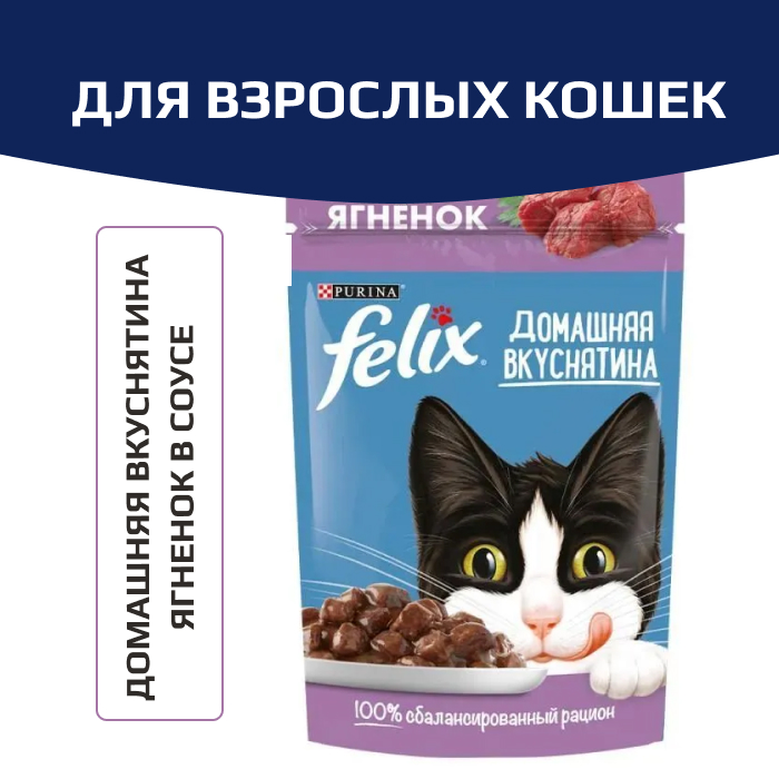 Влажный корм Felix Домашняя вкуснятина для взрослых кошек, с ягненком в соусе.