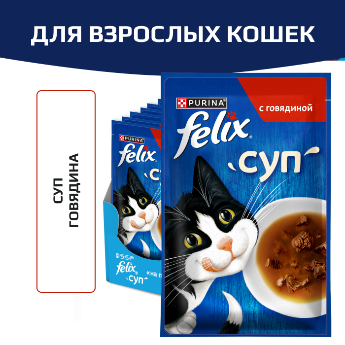 Felix суп пауч для кошек говядина.