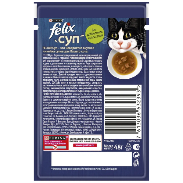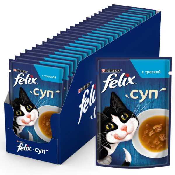 Felix суп пауч для кошек треска.