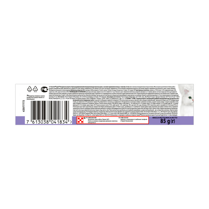 Для взрослой кошки среднего веса (4 кг) требуется от 3 до 4 баночек в день. Кормление желательно разделить минимум на 2-3 приема. Данная суточная норма рассчитана для умеренно активных взрослых кошек, живущих в условиях нормальной температуры окружающей среды. В зависимости от индивидуальных потребностей кошки норма кормления может быть скорректирована для поддержания нормального веса Вашей кошки. Подавайте корм комнатной температуры.