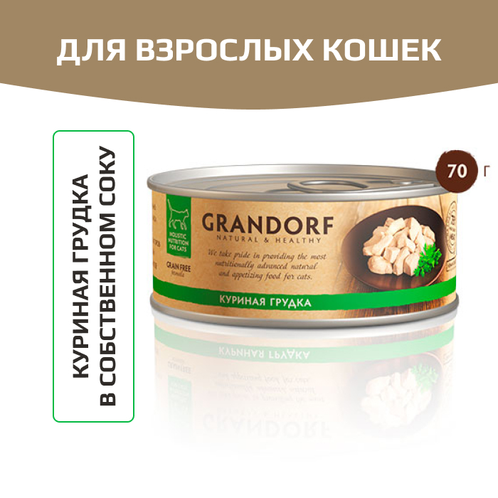 Консервы Grandorf Chicken in Broth куриная грудка - влажный корм для кошек класса холистик (куриная грудка в собственном соку).