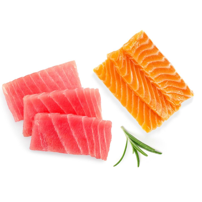 Филе тунца и лосося – источник Омега-3 жирных кислот, в том числе ДГК (докозагексаеновой) и ЭПК (эйкозапентаеновой), а также богатый источник белка с высокой степенью переваримости. Поразит даже самого искушенного питомца своим незабываемым вкусом и ароматом.