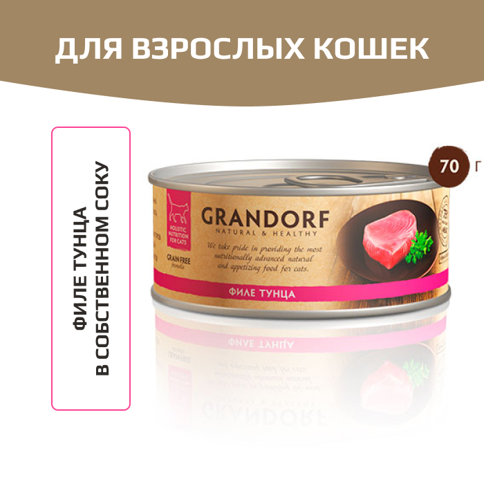 Консервы Grandorf Tuna in Broth филе тунца - влажный корм для кошек класса холистик (филе тунца в собственном соку).