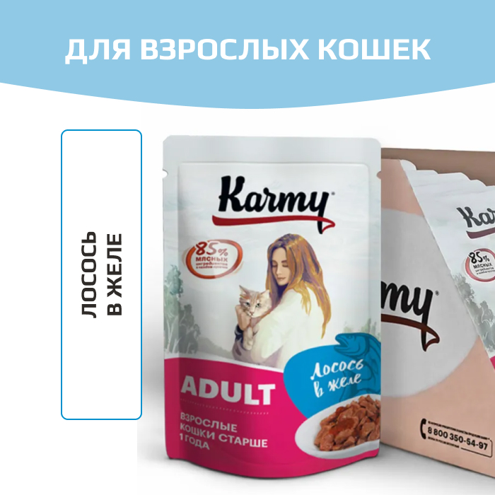 KARMY ADULT корм для кошек консервы Лосось в желе.