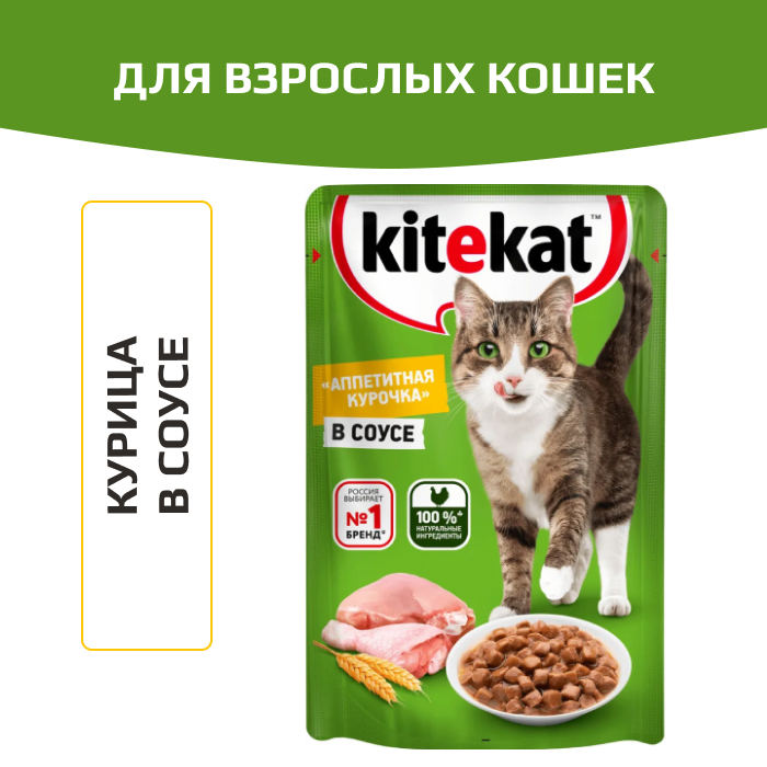 Любимый нежный вкус для вашего кота! После обеда с новыми силами можно продолжать домашние приключения! Kitekat с курицей в соусе – это порция сочных кусочков с курицей, приготовленных по особому рецепту. В его основе – формула сбалансированного питания, которая содержит белки, минералы, витамины, таурин и животные жиры. Kitekat – это идеальный источник жизненных сил для кошки.