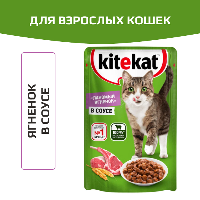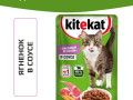 Kitekat корм консервированный для взрослых кошек ягненок в соусе.