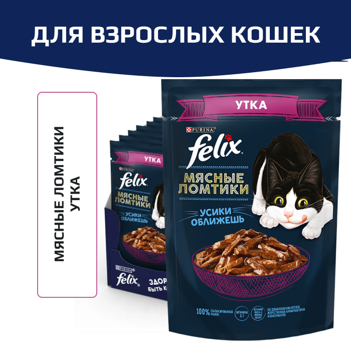 Эксперты Purina, разрабатывая влажные корма для домашних любимцев, создали корм для взрослых кошек Felix «Мясные ломтики» — специально для Вашего любителя мяса. Влажный корм для кошек Felix сбалансирован и удовлетворяет все потребности Вашего питомца в витаминах и минеральных веществах, а также дает возможность сполна насладиться невероятным вкусом.