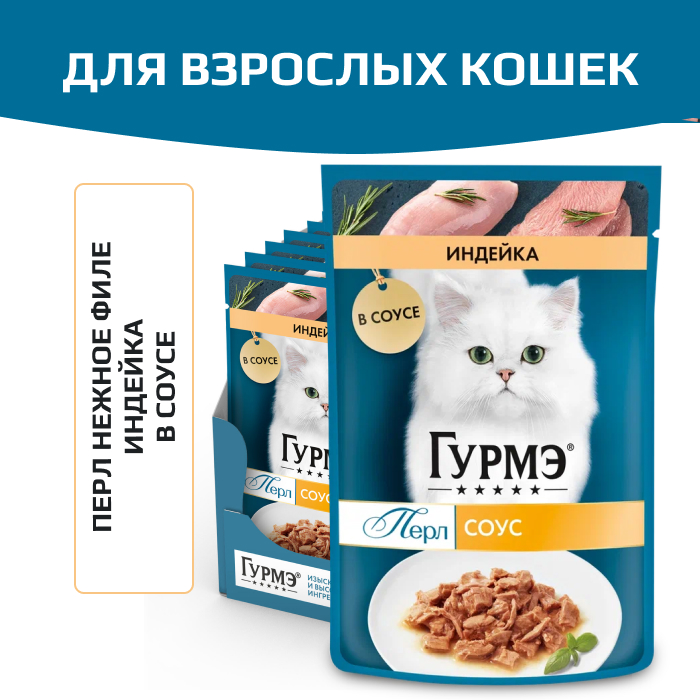 Gourmet Перл Нежное филе паучи для взрослых кошек с индейкой в соусе.