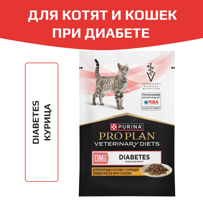 Purina Pro Plan Veterinary Diets DM St/Ox Diabetes Management корм консервированный для кошек диетический, для регуляции поступления глюкозы (при сахарном диабете) с низким уровнем сахаров, с курицей.