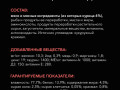 влажность: 77.7%, белок: 13.0%, содержание жира: 4.5%, сырая зола: 2.4%, сырая клетчатка: 0.6%, крахмал: 0.8%, общее количество сахара: <0.5%, таурин: 1650мг/кг, МЕ: 0.98ккал/г.