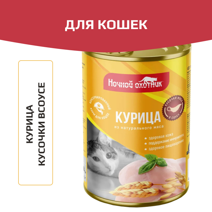 Ночной охотник корм консервированный для кошек курица в соусе.