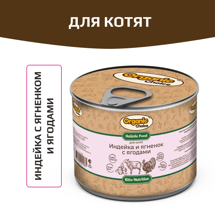 Organic Сhoice влажный корм для котят индейка с ягненком и ягодами.