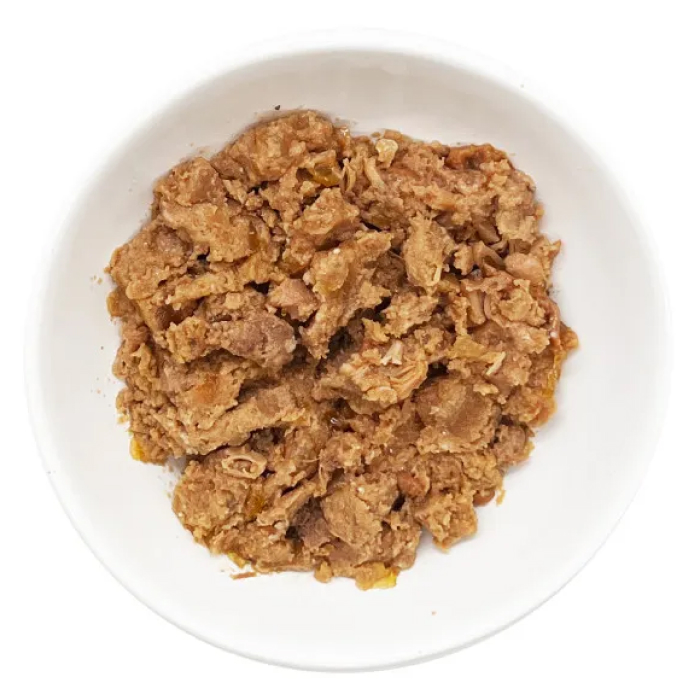 индейка 35%, ягнёнок 35%, бульон 27%, витаминно-минеральный комплекс 1%, клюква 0,6%, черника 0,6%, оливковое масло 0,6%, таурин 0,2%.