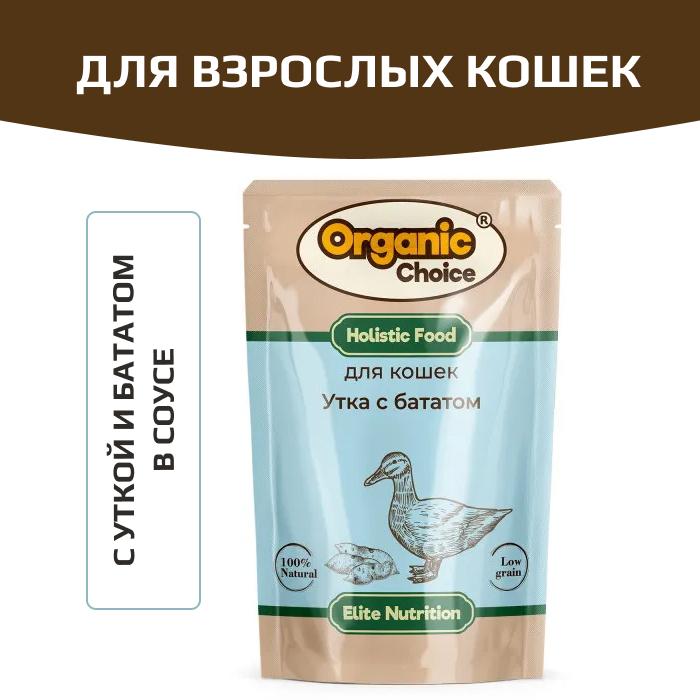 Organic Сhoice влажный корм для кошек с уткой и бататом в соусе.