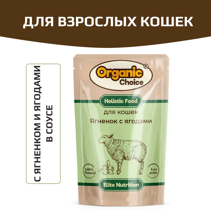 Organic Сhoice влажный корм для кошек с ягненком и ягодами в соусе.