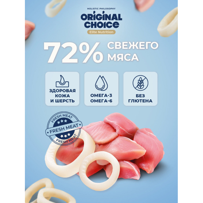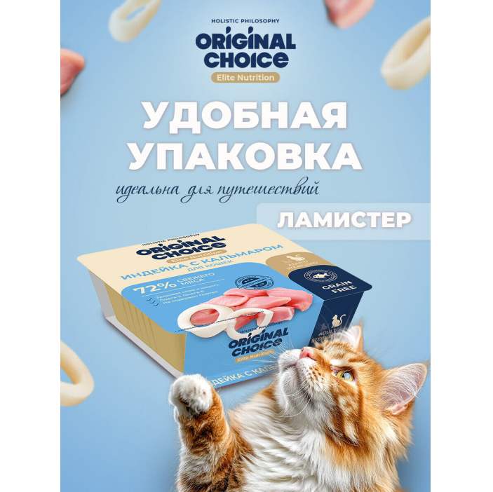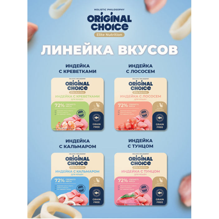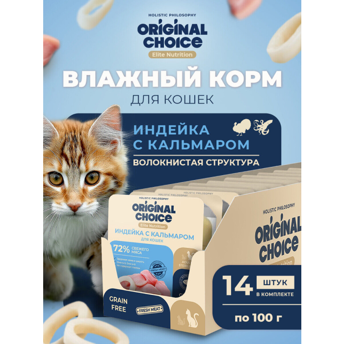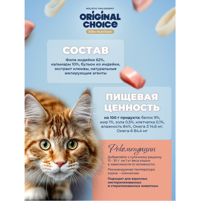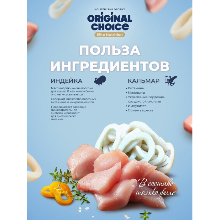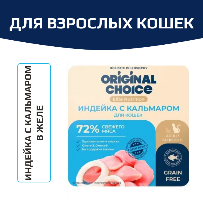 Original Choice Elite Nutrition Adult влажный корм для взрослых кошек, филе индейки с кальмаром в желе.