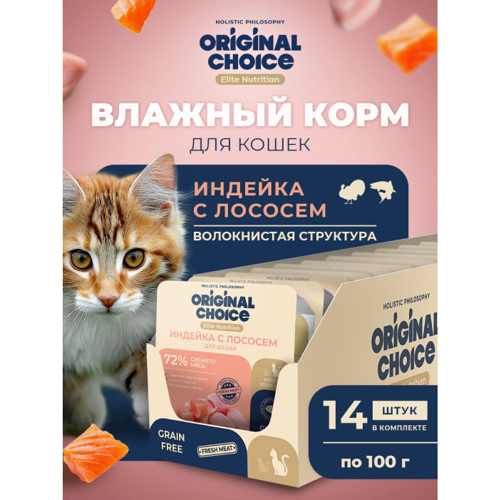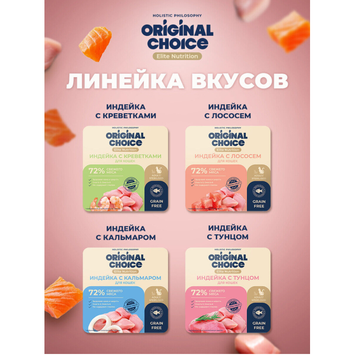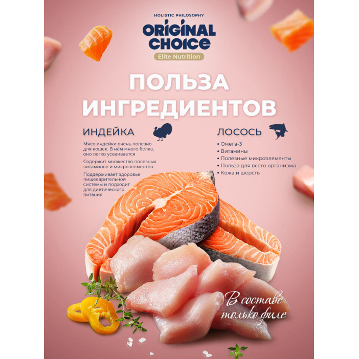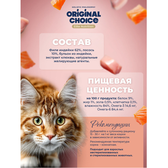 Original Choice Elite Nutrition Adult влажный корм для взрослых кошек, филе индейки с лососем в желе.