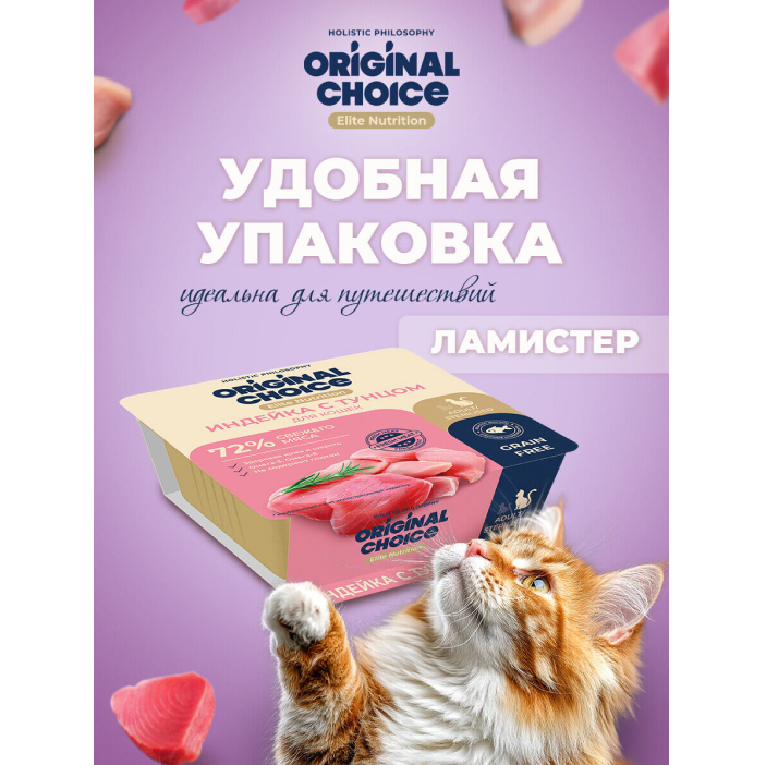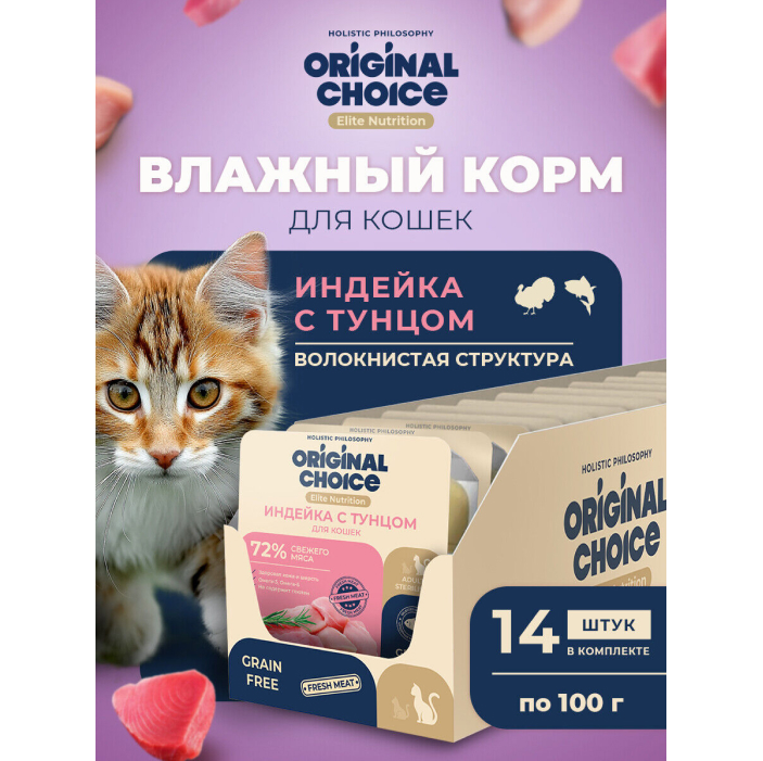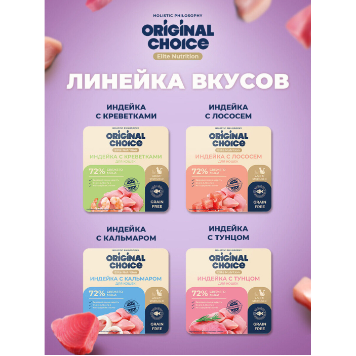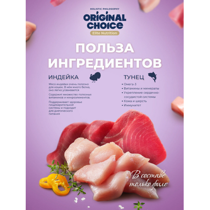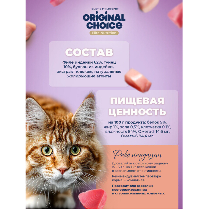 Original Choice Elite Nutrition Adult влажный корм для взрослых кошек, филе индейки с тунцом в желе.