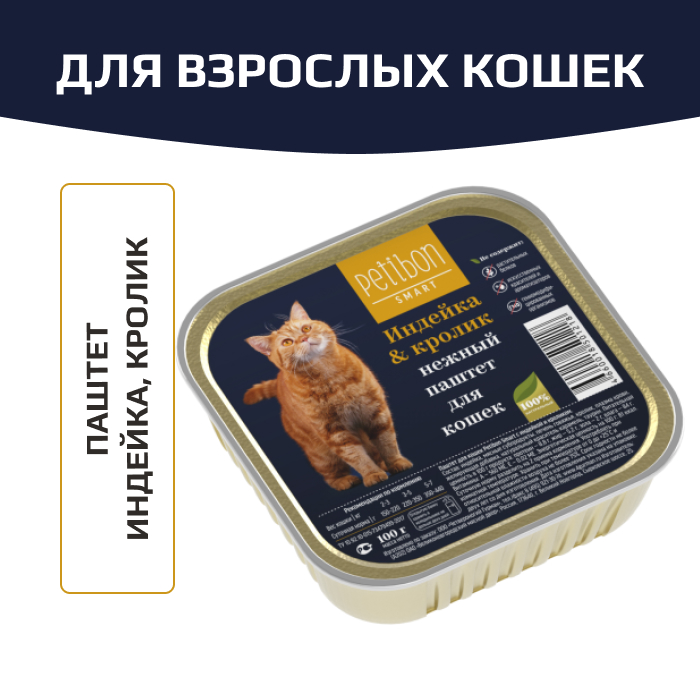 Petibon Smart консервы для кошек с индейкой и кроликом.